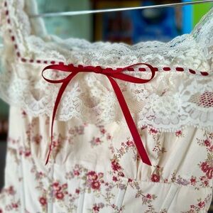 Lacemade Cottage Core French Corset Red Garnet Dress 100% Cotton EUC XS Romantic