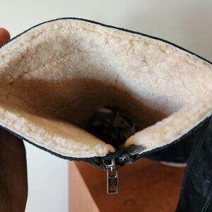 UGG Broome 5518 Tall Black Suede Sheepskin Shearling Lined Zip Boots Women's Shoes Sz 8
