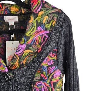 Kamana New Women's Jungle Queen Knit Embordered Button Wool Blend Sweater Coat Size M NWT