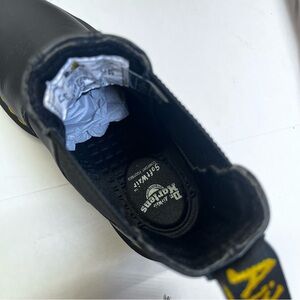 Unmistakably Doc’s, the boot is signed with grooved sole walls, yellow welt stitching, and a black and yellow heel loop.