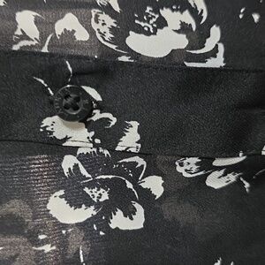 Lauren Ralph Lauren Womens Blouse Black White Floral Button Up Lightweight Sz L