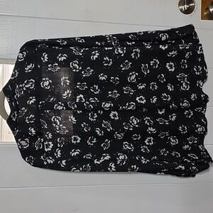 Lauren Ralph Lauren Womens Blouse Black White Floral Button Up Lightweight Sz L. Measurements in pics. Pre-owned, very good condition.