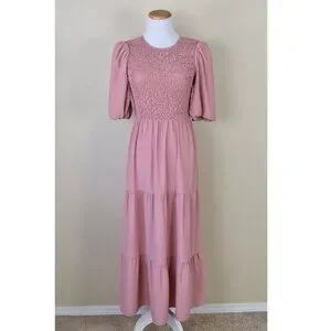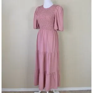 WAYF Camden Smocked Midi Tiered Dress - XS