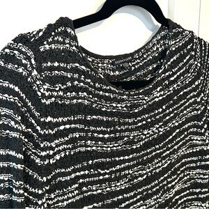 Eileen Fisher Women's Black and White Striped Nubbly Cotton Sweater in Size XL