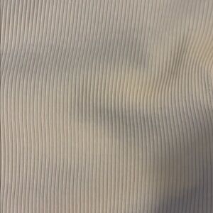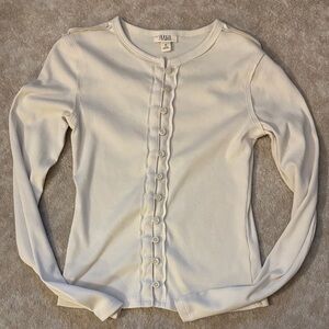 Chic off-white button-down shirt. Features long sleeves and ribbed texture. Ideal for layering.