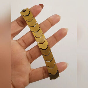 Bracelet has weight. Solid and sturdy. Great Y2K piece and awesome streetwear. Definitely a statement piece.