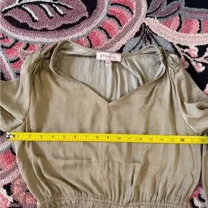 Philosophy Whimsygoth Peplum Blouse Olive Taupe Long Sleeve V Neck Women’s S