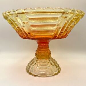 Jeanette Glass Louisa pattern amberina glass pedestal fruit bowl or compote.