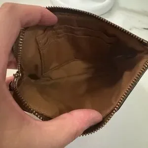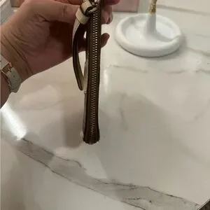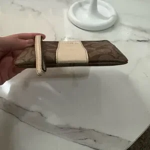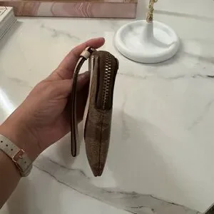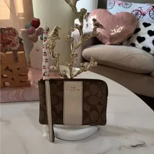 Coach Signature WomenPVC Small Corner Zip Wristlet Khaki Chalk