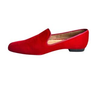 🆕 Lands’ End Loafers Red Velvet Leather Flats Women’s