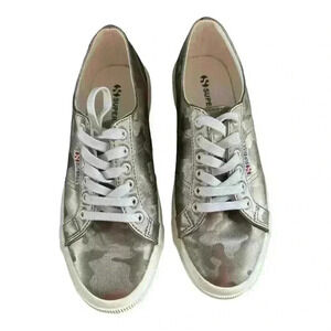 Superga Silver Metallic Camo Lace Up Sneakers Women’s 8.5 Men’s 7