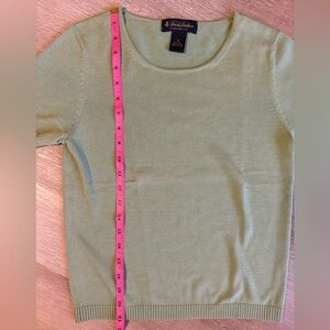 Top features a crew neck, ribbed knit cuffs, and a ribbed hem. Great condition. Size - XS