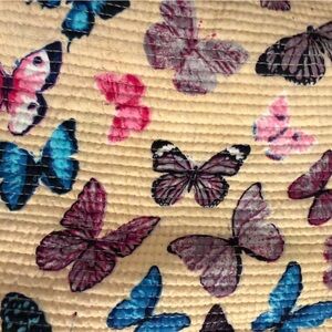 Color: Cream/Natural with Multi-Color Butterflies (Pink, Blue, Purple) / Reverse side Pink & Cream Stripes