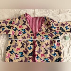 Handmade Reversible Quilted Jacket – Size XXL – Butterfly Print