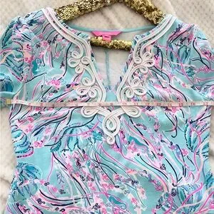 Lilly Pulitzer Harper Shift Dress Long Sleeve Bayside Blue Stretch Medium