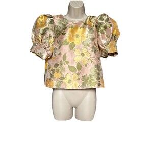 NWT Tuckernuck Pomander Place Lotus Thea Size S Jacquard Floral Puff Slev Blouse