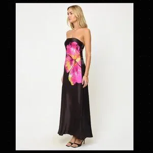 Date night or drinks with the girls…the Spring Into Love Dress is a statement in itself. This satin strapless midi dress will have all eyes on you thanks to its bold hibiscus floral print and back cut-out. Slip into some kitten heels or your favorite flats and let the compliments roll in.