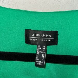 This vibrant green mini dress by Adrianna Papell features a flattering wrap-style bodice with a V-neckline and charming short puff sleeves. The tiered skirt adds a playful touch, perfect for a casual day out or a night on the town. Made from lightweight fabric, it offers both comfort and style for any occasion.