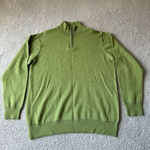 NEW Martin Gordon Sweater Mens Large Green Wool 1/4 Zip Pullover Preppy Outdoor