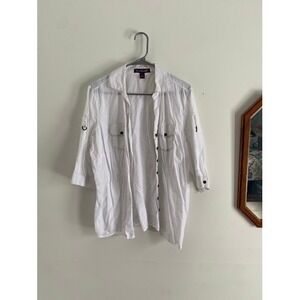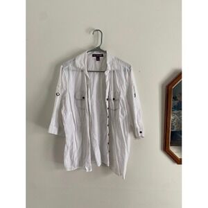 Gloria Vanderbilt White Cotton Button Down Roll Tab Sleeve Shirt Plus Size 1X