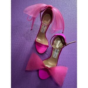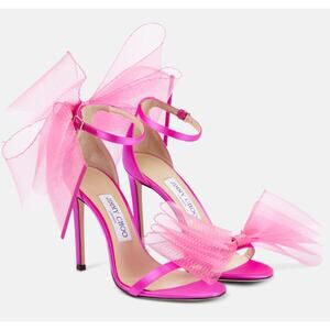 $995 Jimmy Choo Aveline 100 Fuchsia Bow Sandals Womens Shoes Size 37 New Heels
