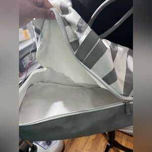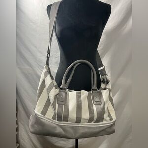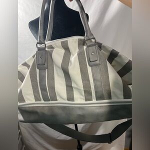 Ulta Striped Weekend Bag Gray White Spacious Travel Tote Lightweight carryall