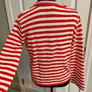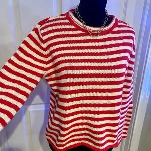 Chic knit sweater with red and white stripes. Ideal for everyday style.