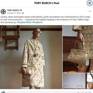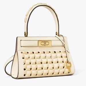 The Spring/Summer 2021 collection puts an emphasis on handwork and natural materials. Based on baskets that hung in Tory's childhood home, fine raffia from Japan is intricately woven by hand, through punched leather holes, into a graphic basket-weave on our Lee Radziwill Petite Bag. Detailed with signature lock-and-key hardware, the frame bag comes with an optional shoulder strap. The collection is named for Lee Radziwill, a woman Tory always admired — she was fearlessly unique.