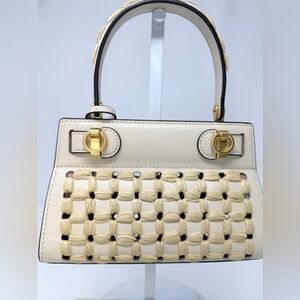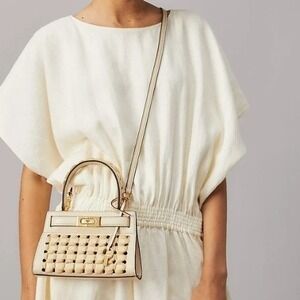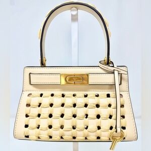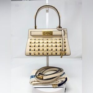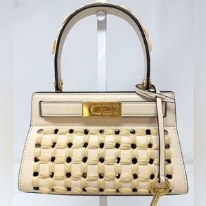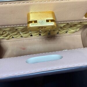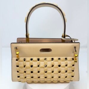 Tory Burch Lee Radziwill Woven Raffia Crossbody Leather Bag