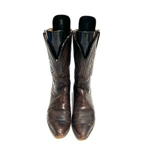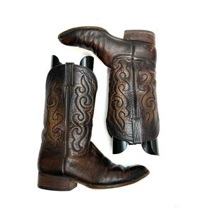 LUCCHESE | Vintage 1970s mens brown marbled leather western style cowboy boots