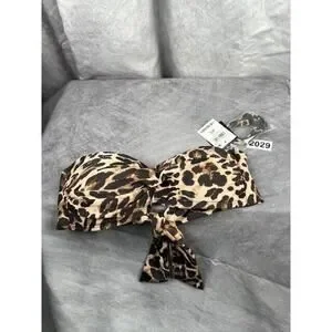 Bar III NATURAL Convertible Cheetah-Print Bandeau Bikini Swim Top, US X-Small