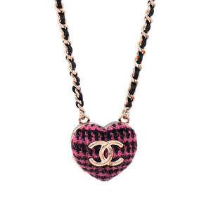 Chanel CC Heart Locket Pendant Necklace Metal with Tweed, Leather, and Resin