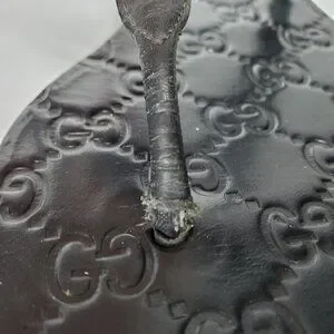 -Black leather with GG pattern on footbed