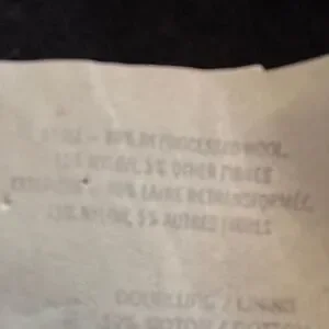 Material content tag is faded but 80% pre processed wool, 15% nylon and 5% other fibres