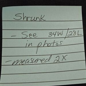 Please note: jeans have shrunk approximately 2" in the waist and inseam (see photos). No major flaws.