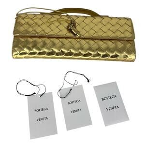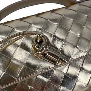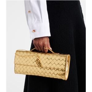 Bottega Veneta Andiamo Gold Intrecciato Leather Clutch Top Handle Bag