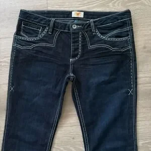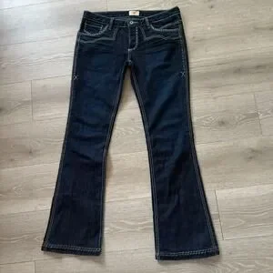 Antik Denim Womens Dark Blue Stretch Embellished Western Bootcut Jeans Size 31
