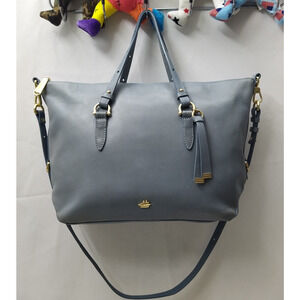 Brahmin Delaney Blue Leather Double Closure Satchel Bag