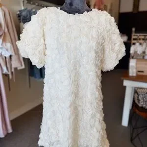 This chic mini dress features a stunning floral texture in a classic white hue. Perfect for any occasion, it combines elegance with comfort.