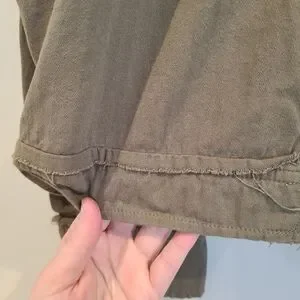 Cropped raw hem utility jacket, cotton fabric relaxed fit. in great preloved condition. Color is a olive green/tan.