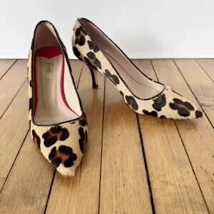 Boden Leopard Calf Hair Pointed Toe Pumps Heels