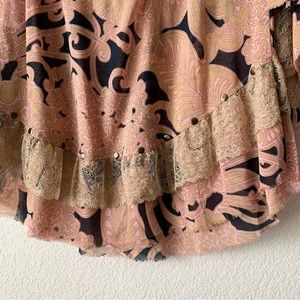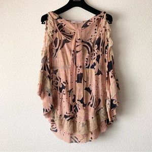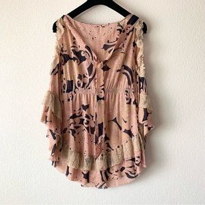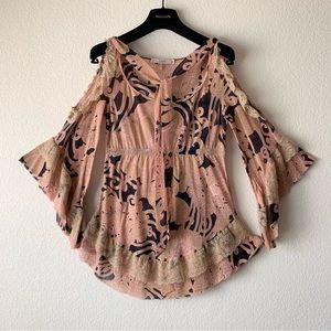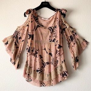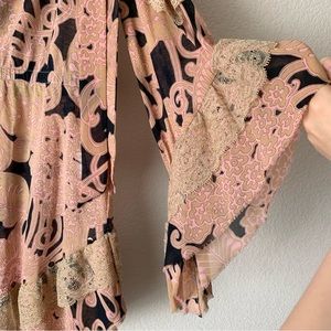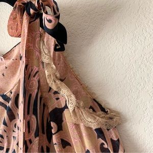 Red Valentino vintage y2k retro blouse. Made in Italy. Open shoulder. Bell sleeve. Shoulder bow ribbon detail. Metal stud detail. Retro floral print with lace trim. Italian size 40 (us size 2). Measured flat: 14” shoulder, 26” long, 13” underbust band, 15.75” bust, 22” sleeve at longest, 16.5” sleeve at shortest. Made in Italy. Fairycore Witchcore y2k Whimsigoth aesthetic. Excellent condition.