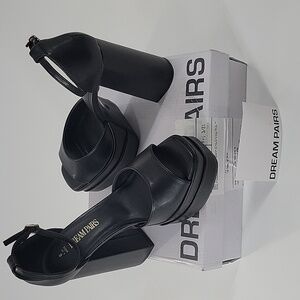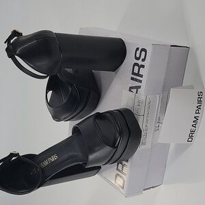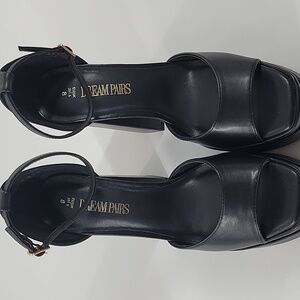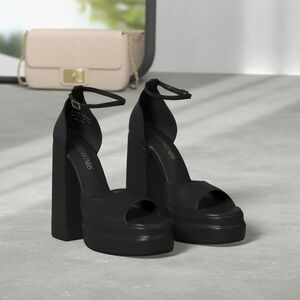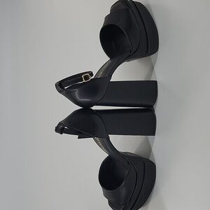 Elevate your style with these chic black platform heels. Perfect for any occasion, these shoes offer both comfort and elegance. NEW IN BOX AND IN EXCELLENT CONDITION!