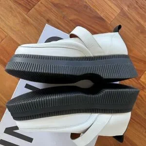 If you know the brand, you know what they usually cost! These are new in box(box is a bit damaged) white with black bottoms. Size 38