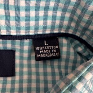 Roundtree & Yorke Aqua Checkered Button Down Shirt