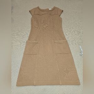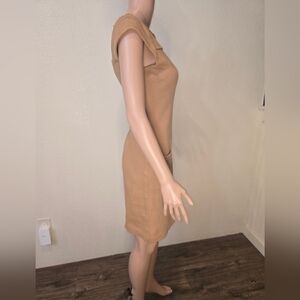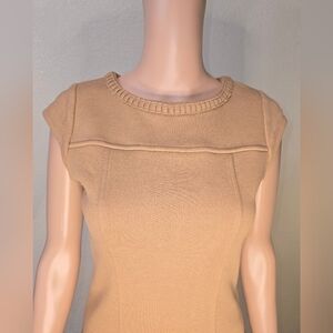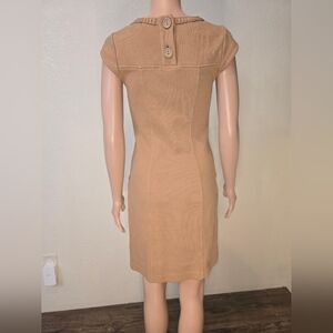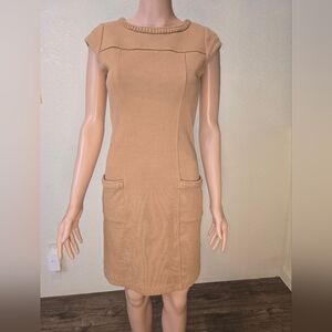 BODEN Women's Sheath Dress Light Brown Stretch Boat Neck Cap Sleeve Butt…