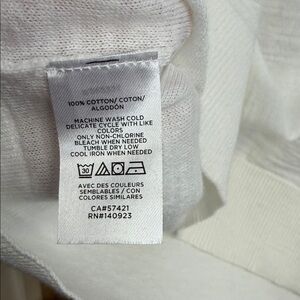 Loft Women’s White Lightweight V-Neck Knit Top - 100% Cotton. Size: Petite Large