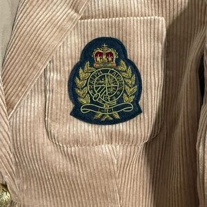 Classic corduroy blazer with crest detail. Beautiful bubble shoulder for an Elegant and classy look. Perfectly polished!