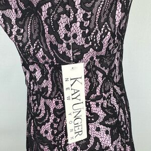 NWT Kay Unger Cocktail Dress Fit & Flare Sleeveless Pink Black Lace Size 6