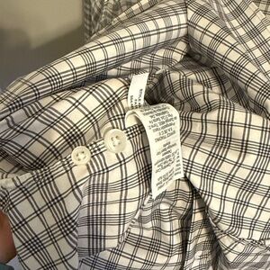 Worn twice to dress work functions. White with dark grey/black stripes. Spare buttons included